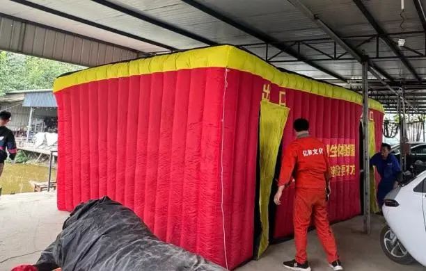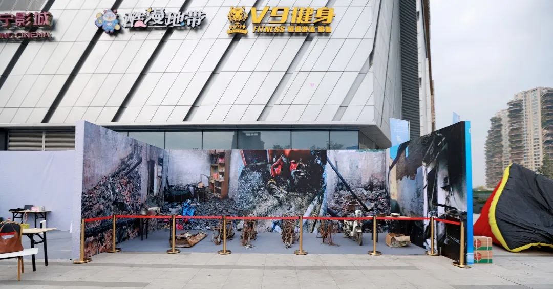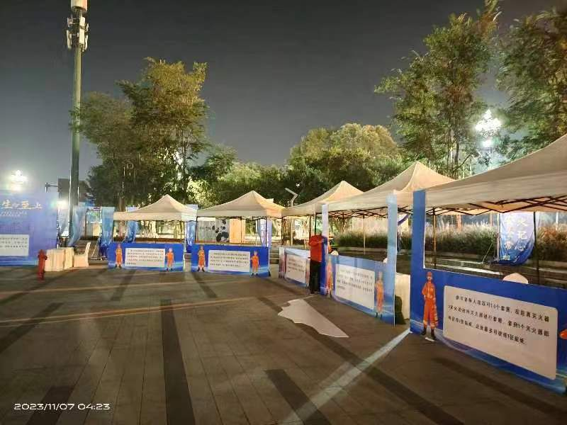 “逃生帳篷”内設有(yǒu)隔斷牆,将帳篷内空分(fēn)隔成遷回曲折的走道空間,為(wèi)迷宮形式,并分(fēn)開設置1個進口和1個出口,進出口上設有(yǒu)遮光用(yòng)的門簾,具(jù)有(yǒu)封閉、黑暗、濃煙等特點讓人有(yǒu)身臨其境之感。