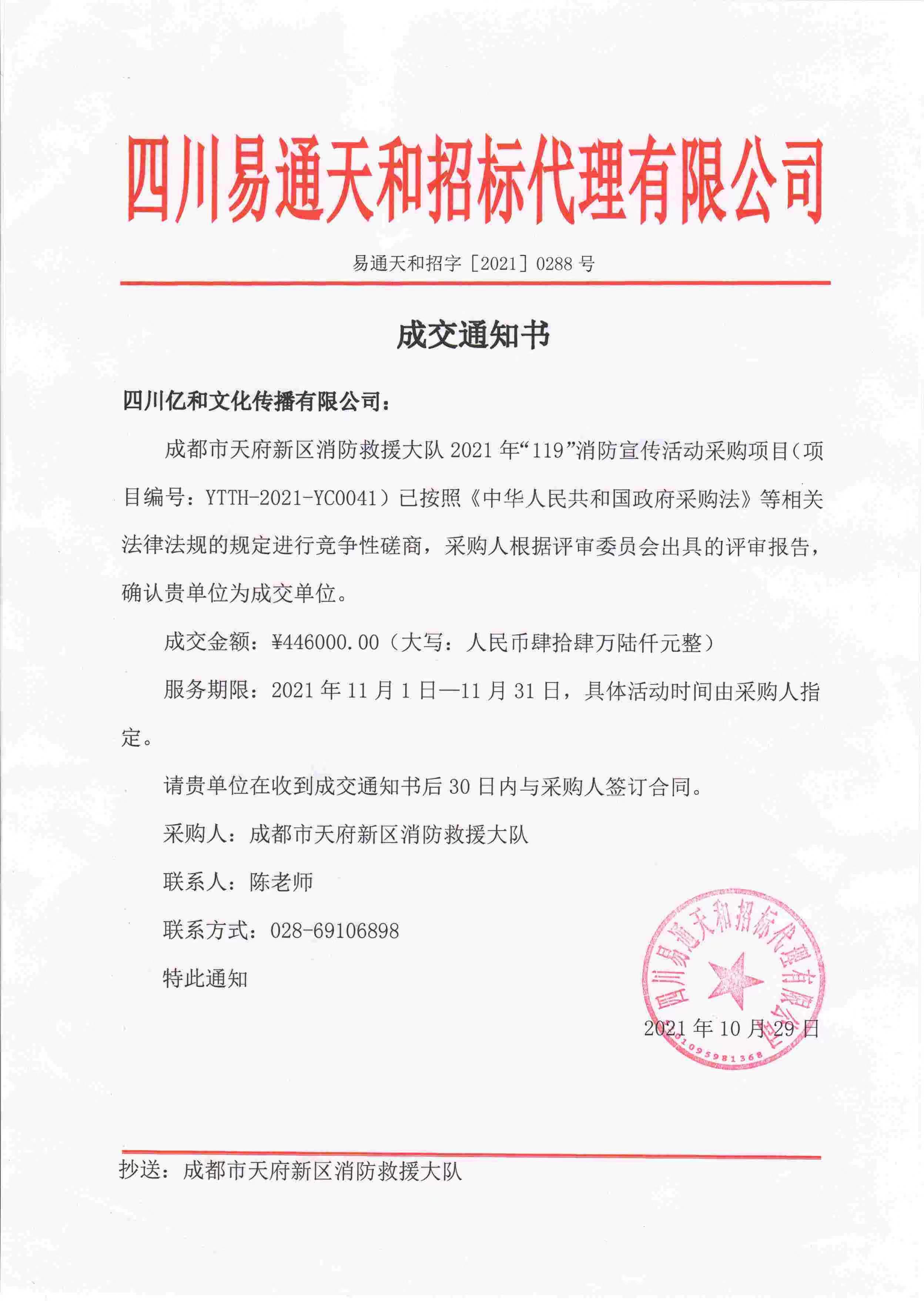 【喜訊】公(gōng)司中(zhōng)标2021年“成都市天府新(xīn)區(qū)消防救援大隊2021年‘119’消防宣傳活動采購(gòu)項目”!
