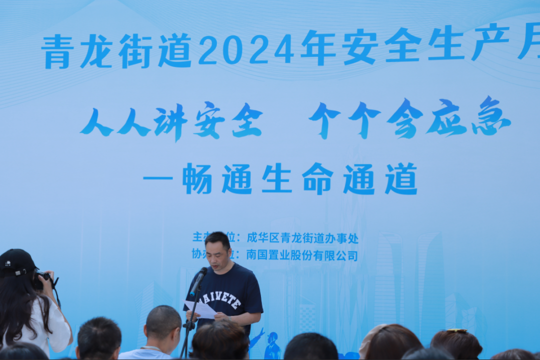 6月25日上午,成華區(qū)青龍街(jiē)道2024年“安(ān)全生産(chǎn)月”活動啓動儀式在泛悅城市廣場舉行。街(jiē)道辦(bàn)領導、街(jiē)道安(ān)委辦(bàn)成員、社區(qū)安(ān)全網格員、轄區(qū)内安(ān)全生産(chǎn)重點行業領域單位代表、居民(mín)代表等共計200餘人參加了本次活動。