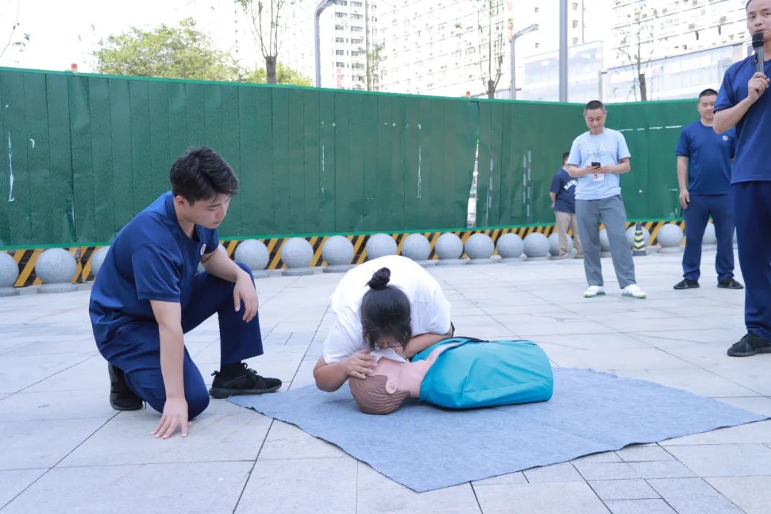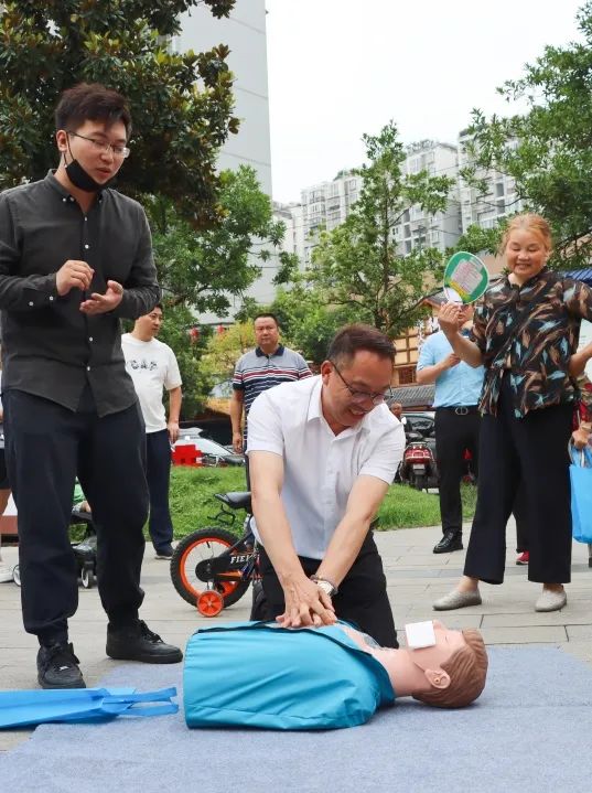 工(gōng)作(zuò)人員現場講解相關安(ān)全理(lǐ)論知識,并邀請群衆參與使用(yòng)滅火器材、學(xué)習人工(gōng)呼吸這一類實踐操作(zuò),從理(lǐ)論到實踐,全方位提升群衆安(ān)全意識與自救互救能(néng)力。