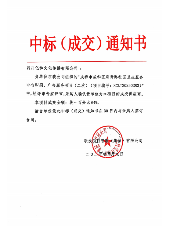 【喜訊】公(gōng)司中(zhōng)标成都市成華區(qū)青龍社區(qū)衛生服務(wù)中(zhōng)心“基本公(gōng)共衛生經費零星廣告服務(wù)項目“
