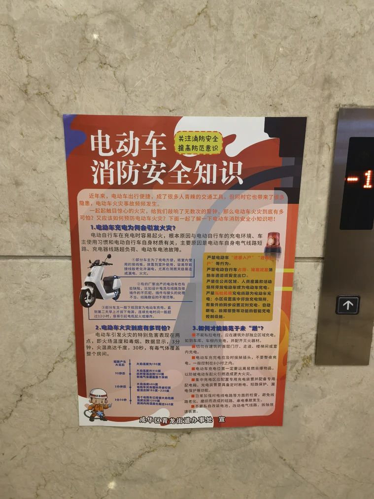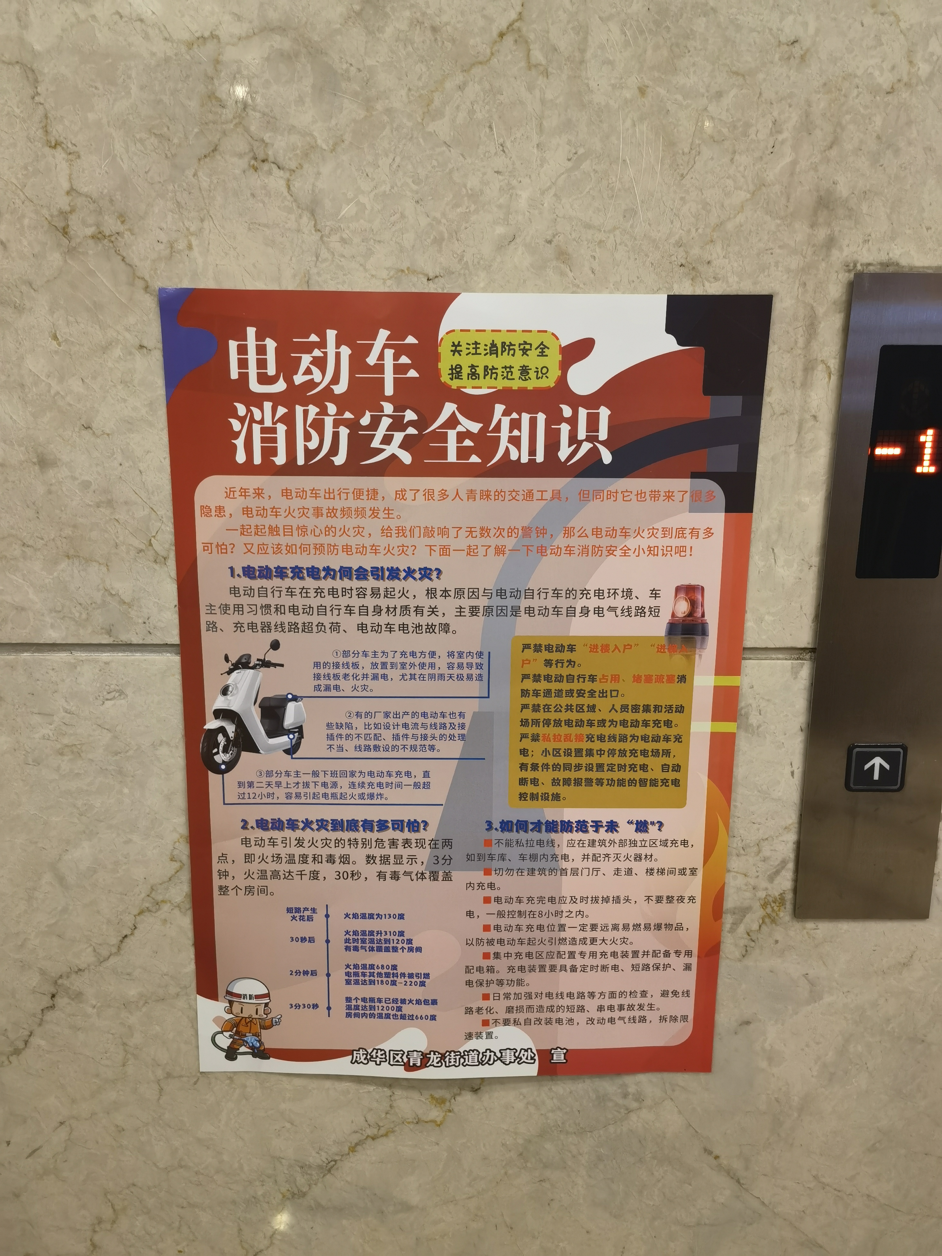 四川億和獨立設計完成的 預防城鄉火災和電(diàn)動車(chē)安(ān)全消防知識 海報已經印刷并貼在各個電(diàn)梯旁。