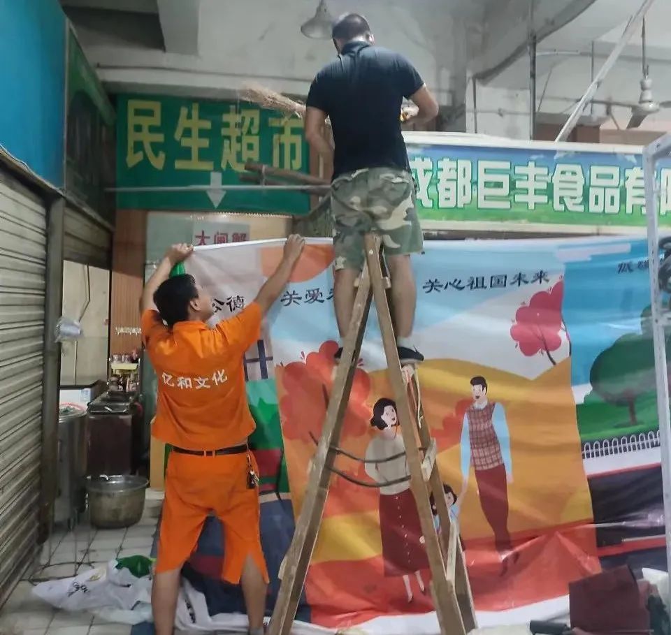 為(wèi)更好地開展精(jīng)神文(wén)明建設工(gōng)作(zuò),滿足群衆日異月新(xīn)的精(jīng)神文(wén)化需求,助推各項事業的有(yǒu)序發展。2022年以來億和文(wén)化在成華區(qū)開展了一系列的精(jīng)神文(wén)明創建宣傳工(gōng)作(zuò),包括設計制作(zuò)與現場安(ān)裝(zhuāng)。我們的工(gōng)作(zuò)人員,為(wèi)了能(néng)盡快落實相關宣傳用(yòng)品的安(ān)裝(zhuāng)張貼工(gōng)作(zuò),他(tā)們在40多(duō)度的室外埋頭苦幹,他(tā)們在熱浪翻湧的地面屈膝上百次,汗水布滿了他(tā)們的臉龐,也浸濕了他(tā)們的衣裳,卻絲毫不影響他(tā)們手上的動作(zuò)和工(gōng)作(zuò)的速度。他(tā)們不辭辛勞,不舍日夜,以專業的技(jì )術,高效地完成了一次又(yòu)一次的安(ān)裝(zhuāng)宣傳工(gōng)作(zuò)。
