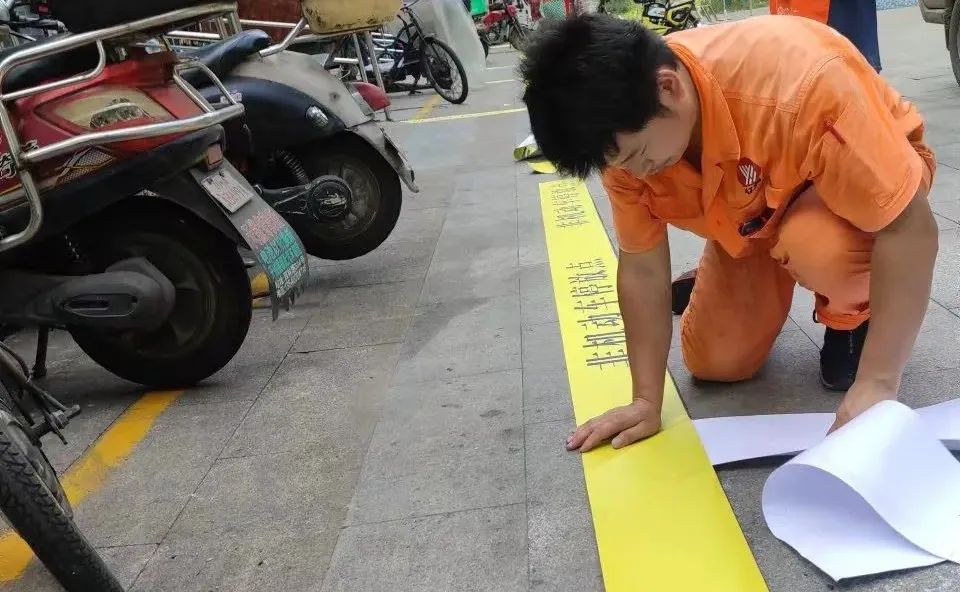 工(gōng)作(zuò)人員張貼非機動車(chē)停放點