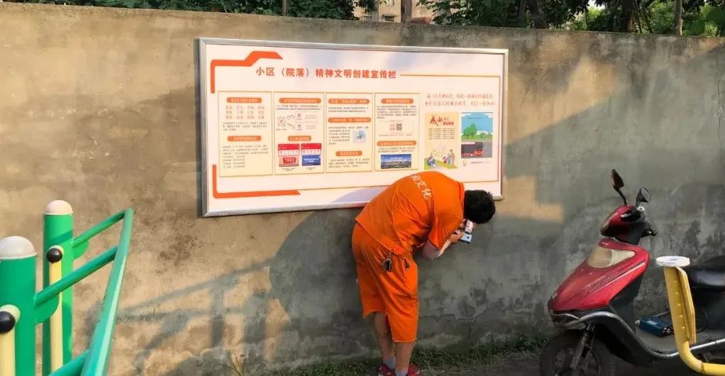 工(gōng)作(zuò)人員安(ān)裝(zhuāng)精(jīng)神文(wén)明建設宣傳欄