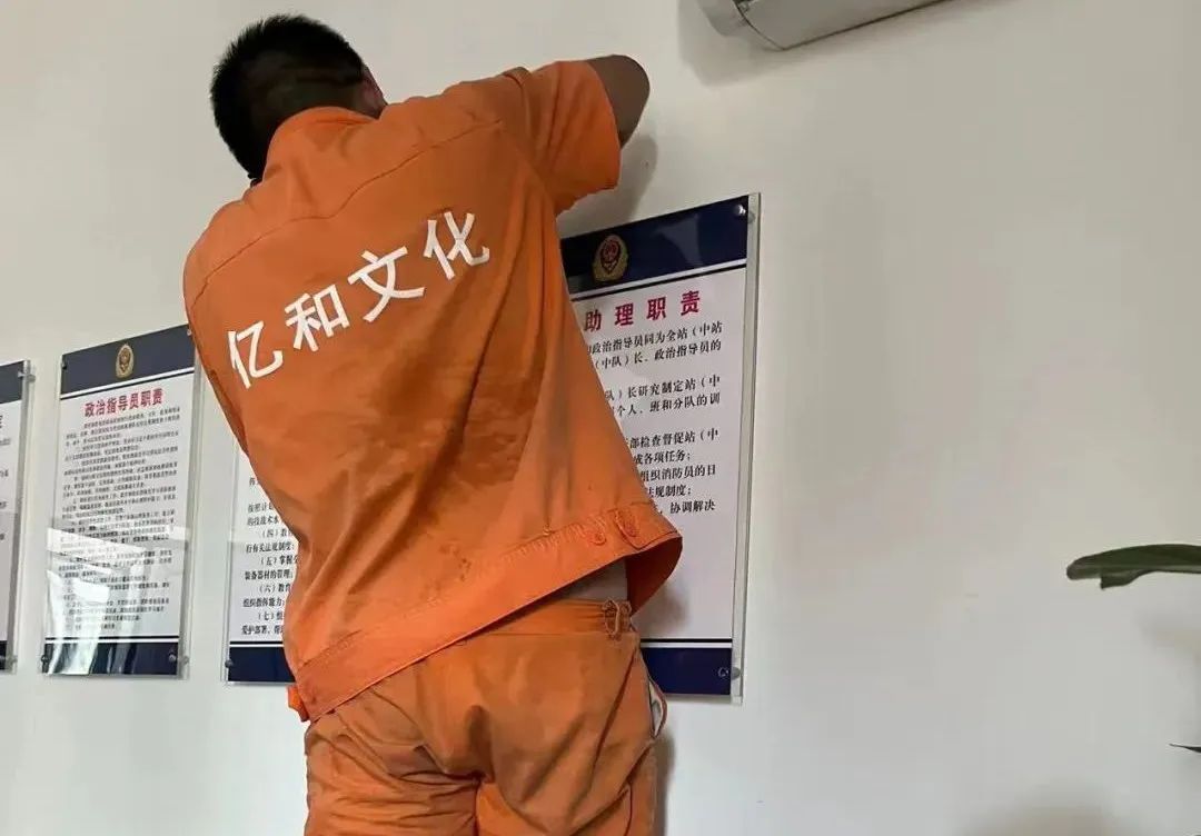 | 工(gōng)作(zuò)人員張貼室内标語 |