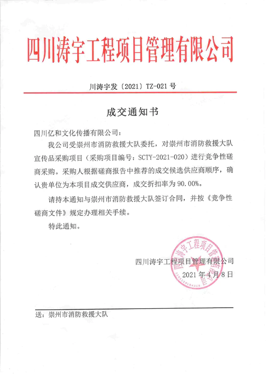• 【喜訊】公(gōng)司中(zhōng)标2021年“成都市崇州市消防救援大隊宣傳品采購(gòu)項目”!