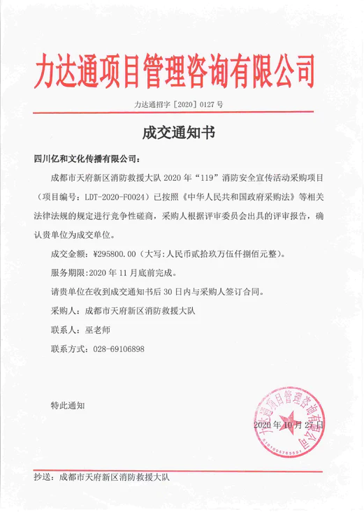 • 【喜訊】公(gōng)司中(zhōng)标2020年“成都市龍泉驿區(qū)消防救援大隊消防宣傳月活動服務(wù)項目”!